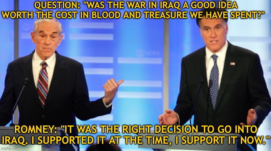 Mitt Romney is the perfect example of the compromised establishment Republican saying whatever he's told to say to keep the money flowing. Best part was the media and the left singing praises over his "principals" during Trump's retarded impeachment while he was clearly showing the entire world he was a pussy with 0 principals. Weird arse Mormon piece of shite