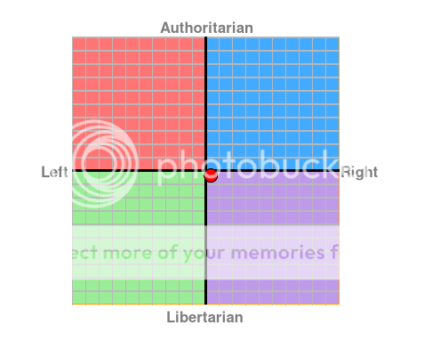I'm probably even a little further left, but some of the social issues I had to select "right" over "left". I'm not going to ever say I "agree" or "strongly agree" with some things, but I'm certainly not hardcore against it either. If there were a neutral, I'd have selected that.