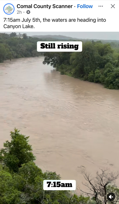 lake travis up another 3 feet in 3 hours. canyon lake up 2 feet in last 3 hours.