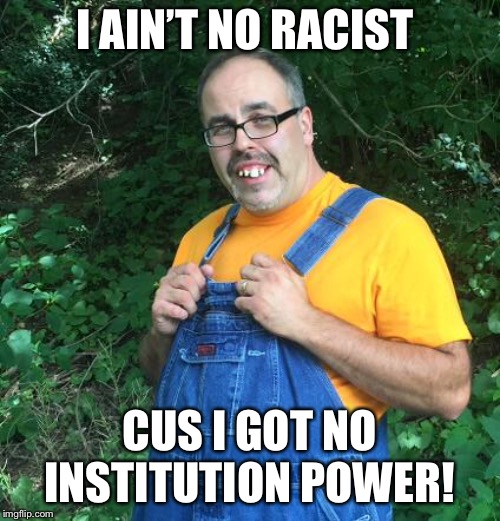 But none of them can be racist because they lack institutional power? How exactly can I exercise my institutional power? Where do I go to do that?