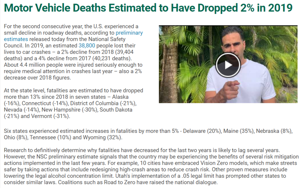 Not to minimize anyone's loss, but that's on track with annual automobile fatalities, and we all drive on our roads every day.