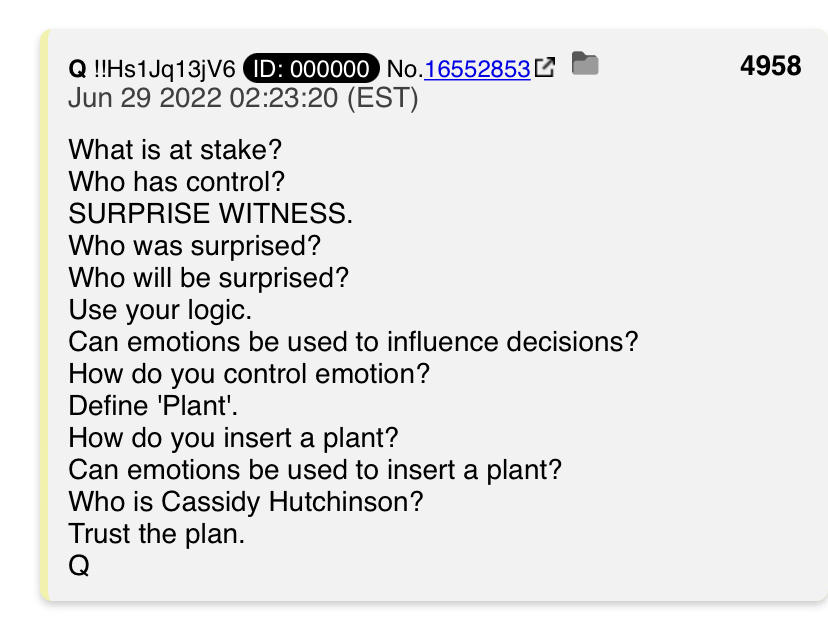 I still don't know wtf "Q" is, but I do know that in 2022 he/she/it is just as reliable a source as anyone in the Media.....