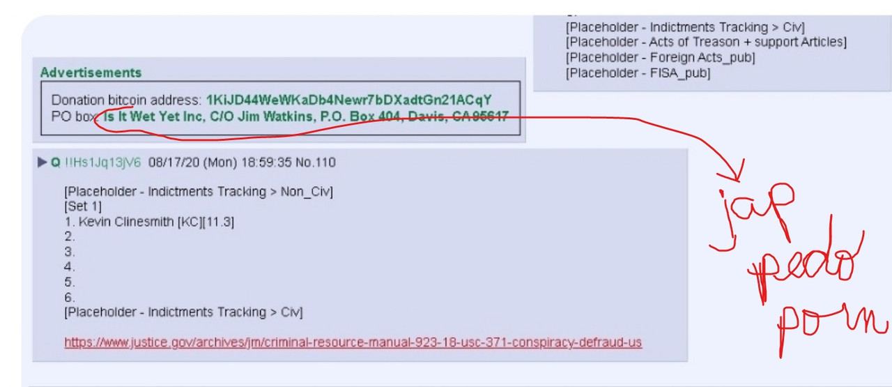And if that foolishness wasn't enough. Vox or somebody posts a screen shot of Q's old place marker. That actually has an ad for Jim Watkins Japanese child porn sites.