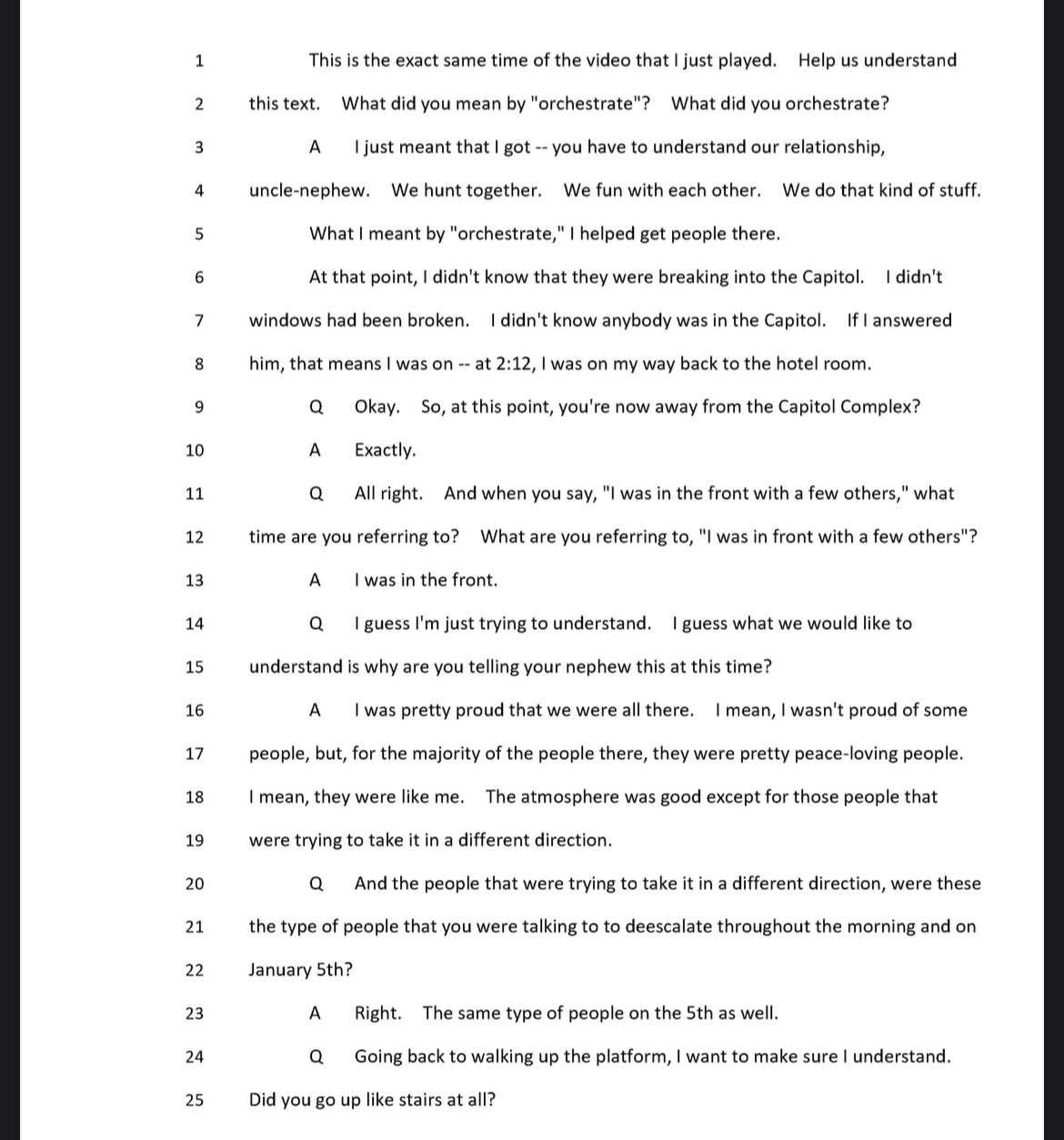 I read the transcript and was saying the same thing. That interview was a joke! They were leading him with most of the questions and then kenzinger jumps in to testify for him a few times. He is definitely part of the group that instigated J6 at the Capitol.