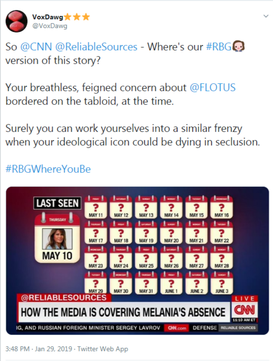 Ridiculous. Our beautiful FLOTUS was actually RECOVERING. Not dead like RGB. This is going to be a weekend at Bernie’s situation. ENEMA OF THE PEOPLE