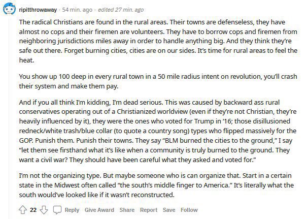 Every baw I know who lives in a rural area is armed to the teeth. I don't think that revolution is going to end the way the person who posted it thinks