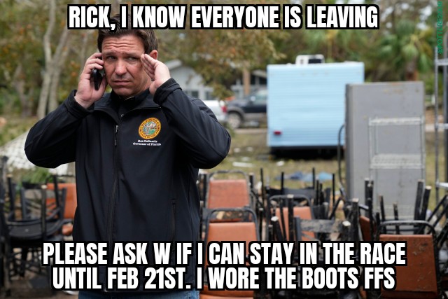 In his defense, he spun up his candidacy before the indictments started pouring in. Not long before that that some of the biggest Trump superfans were posting that they hoped Trump stood down to let Ron take over MAGA.