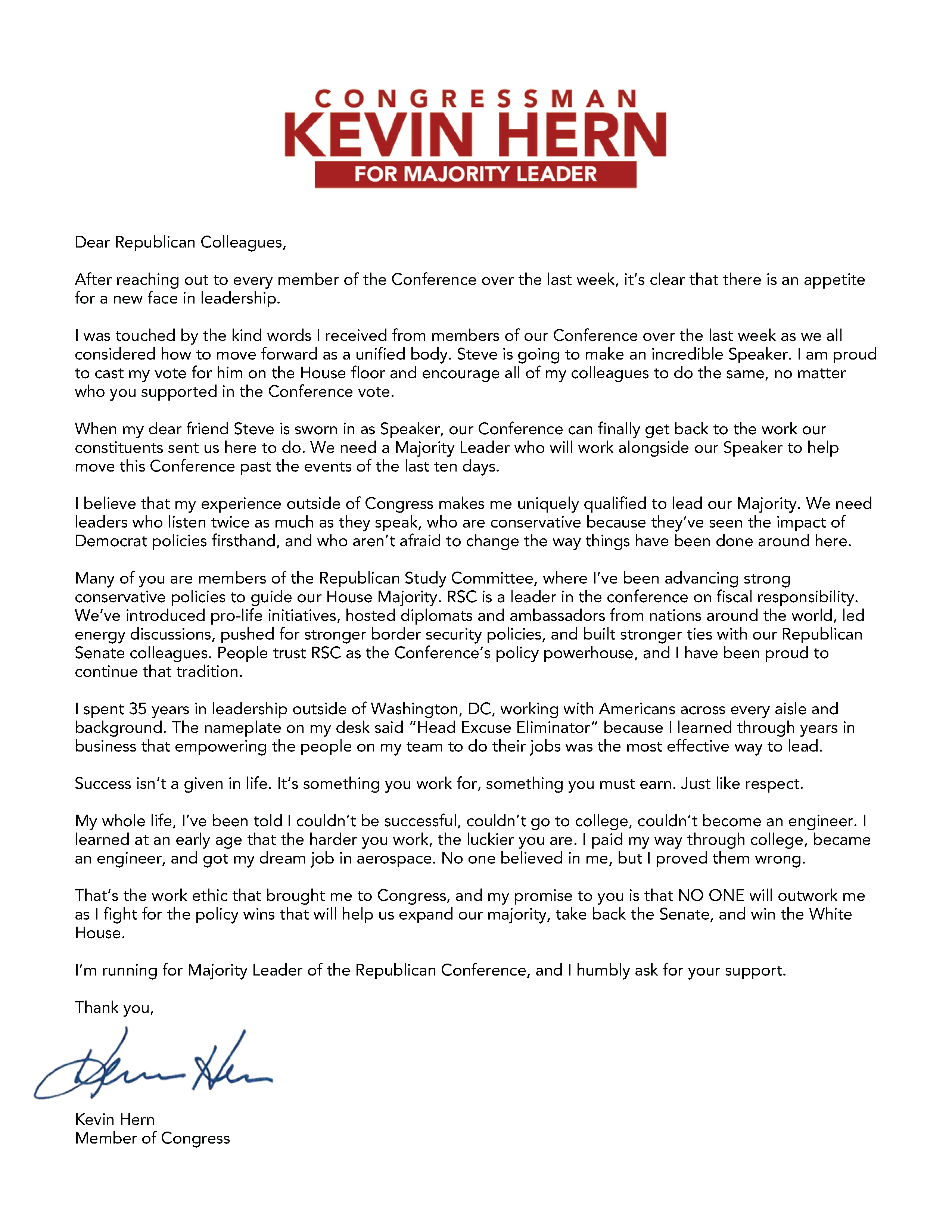 Kevin Hern was exploring running for SOTH but decided to instead run for Majority Leader: