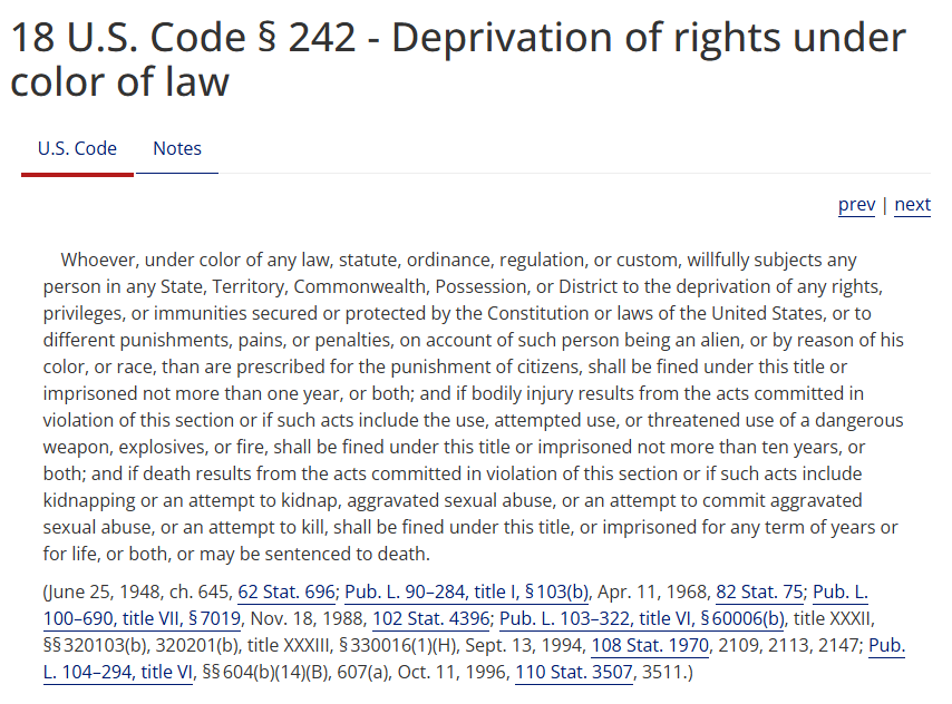 18 U.S. Code § 242 - Deprivation of rights under color of law