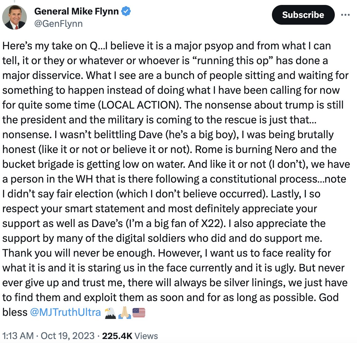 All I know for sure is a lot of high profile/influential Americans who questioned the 2020 GE have been targeted for destruction. I also know the signal being sent by the two tier justice system is clear, any American who questions ths rigging of elections to ensure the preferred D.C. Uniparty candidates are installed into the corrupt political establishment in the Imperial City will also be subject to destruction.