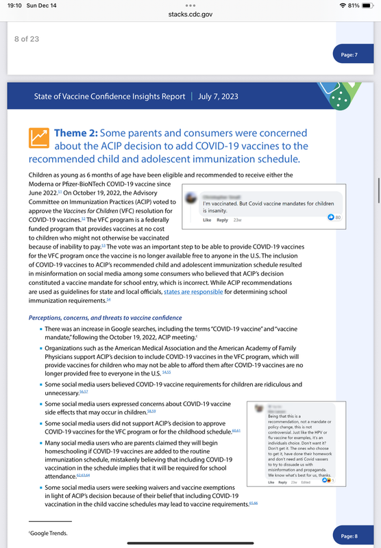They are gone from the web now- but I used to download the special cdc Covid “insight” communications… they studied twitter, YouTube, other stuff- found the most prominent messages and instructed how to counter them.
