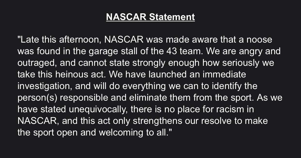 Someone placed a noose in the garage of Bubba Wallace's team at Talladega UPDATE pg. 8