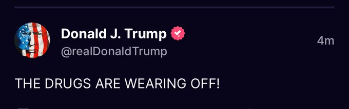 @realDonaldTrump - "THE DRUGS ARE WEARING OFF!"