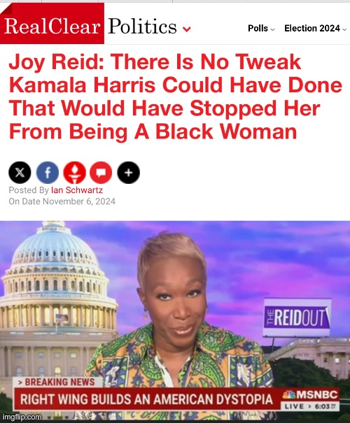 You left out Harris being a POC — but thanks for your contributions Joy Reid!
