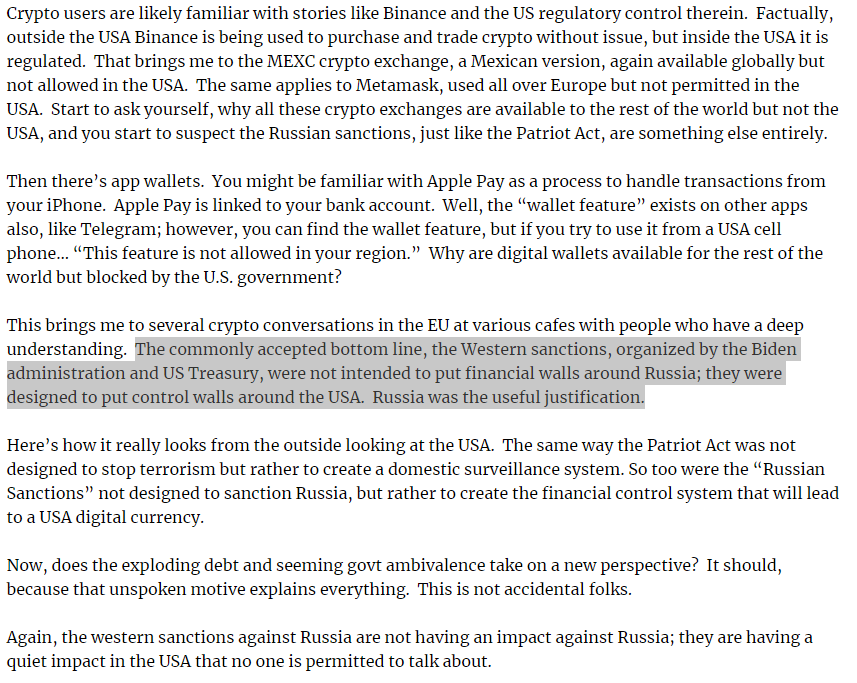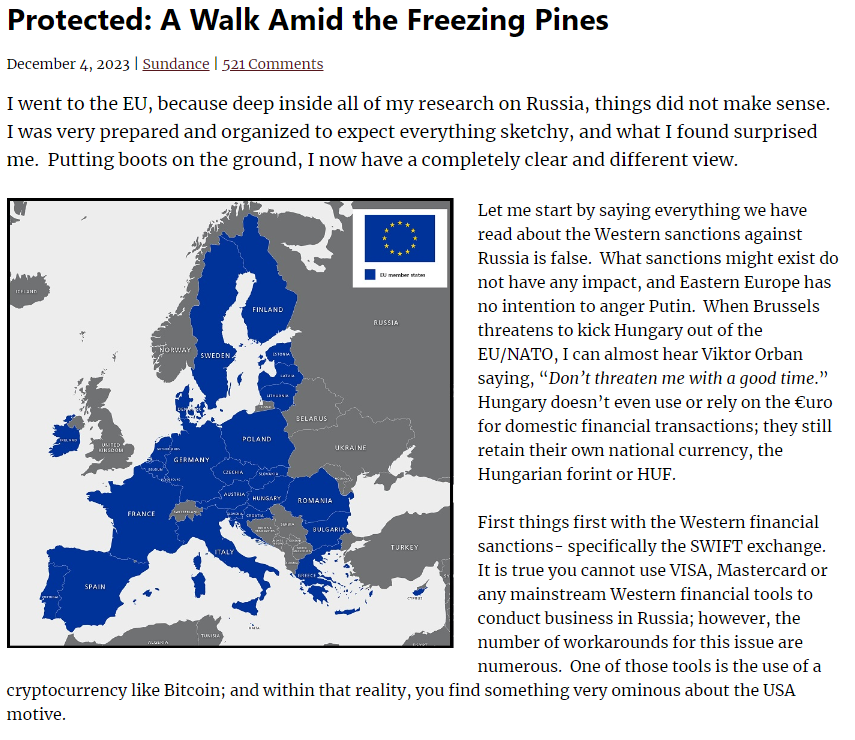 Sundance's report back from the EU. Russia, U.S. Treasury and crypto related.