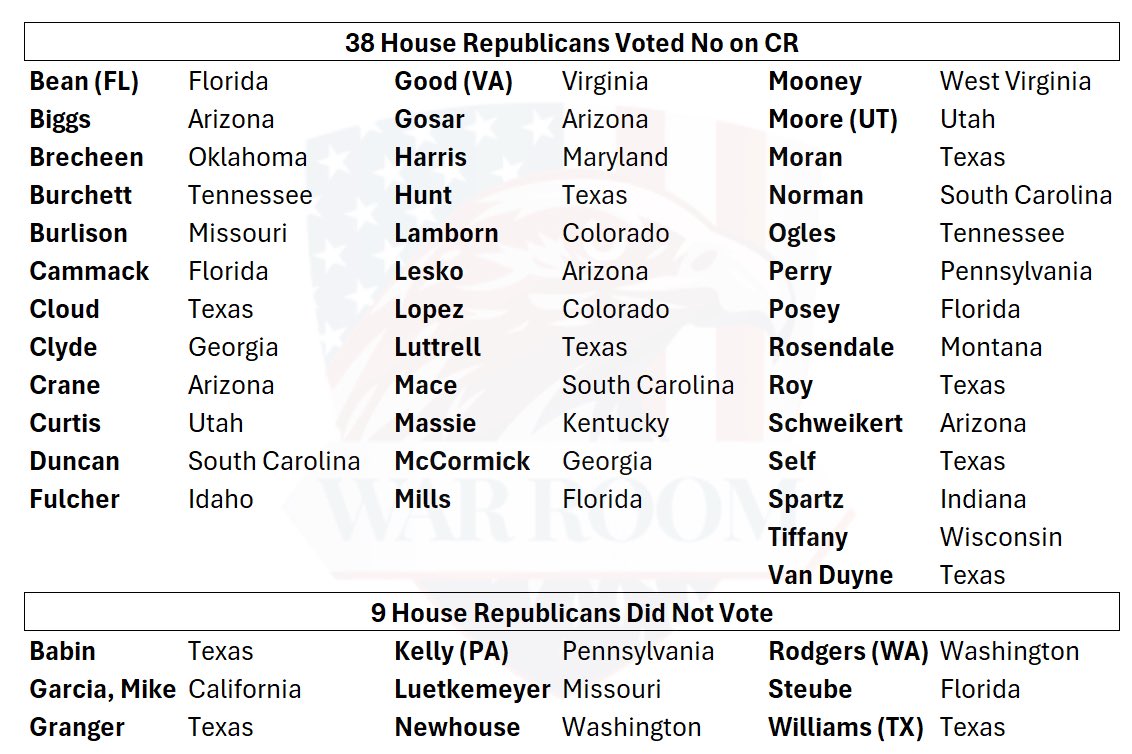 re: The CR has failed in the House, not enough votes remaining to pass