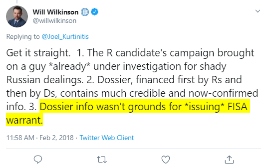 Nearly all those screenshots are journalists saying the dossier was not used to get a FISA