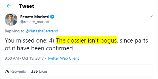 You have to be kidding me? You continue to believe the dossier is true? Holy shite, dude.