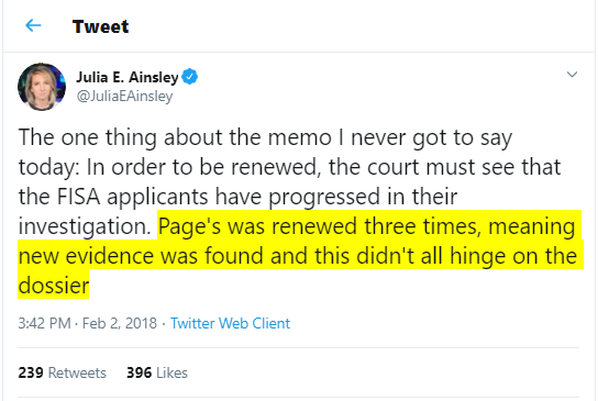 Yeah, looks like McCabe was right when he said without the Dossier they would not have gotten the FISA approved, that it was the main thing they relied on....He was accurate and the media is FAKE news.......