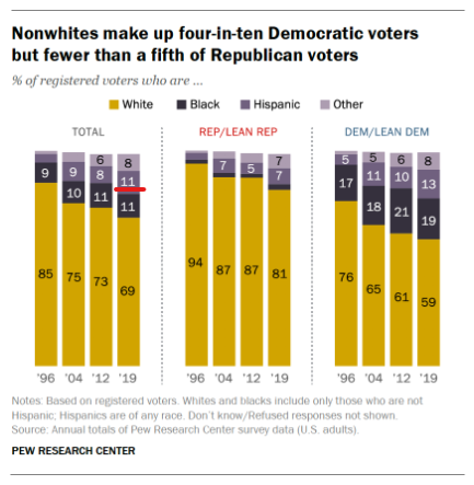 The GOP share of the black vote also jumped sharply from 2018 — but from the very low level of 9 percent up to just 13 percent.