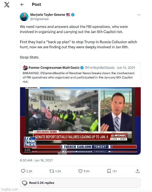 Likewise, while many GOPe pukes like Lindsey Graham turned on Trump during on the FBI entrapment exercise known as January 6th — perceiving January 6th as a political liability and seeking to move on — both Massie and MTG sought to ascertain the extent of the FBI’s involvement in attempting to incite an insurrection: