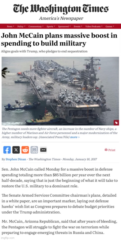 And McCain was a driving force in every single one of these bloated defense budgets.