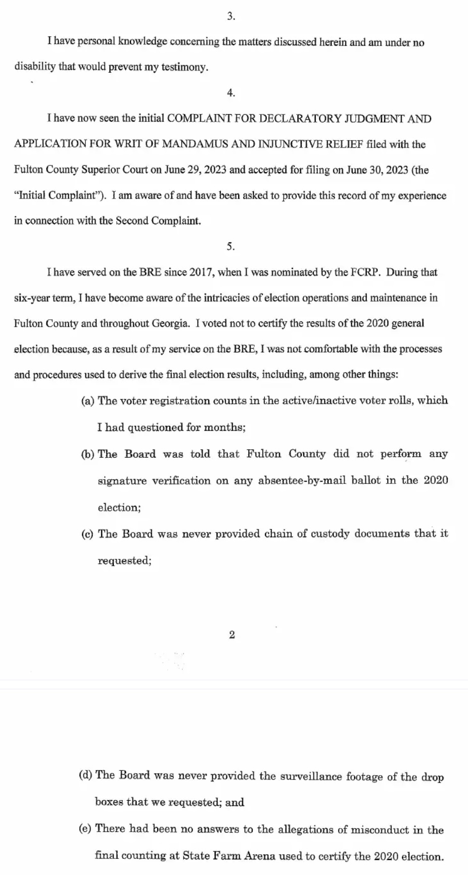 Fulton County Election Board member Mark Wingate just testified that the Fulton County 2020 election shouldn’t have been certified because there was no signature verification done at all.
