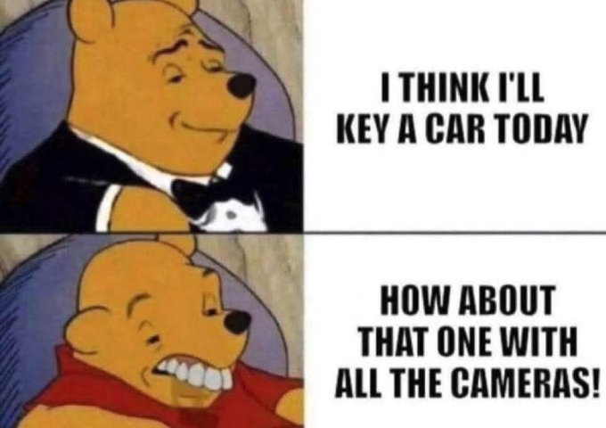 Yet…. YET.. these idiots keep vandalizing these cars after it is broadcasted all over the internet that these vehicles can, and probably are, saving your valdalism you commit from every angle.