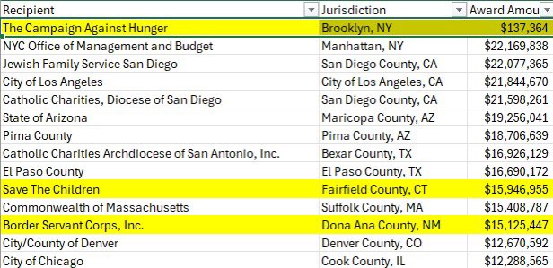 And not just the highlighted ones, Catholic charities? Jewish family center?