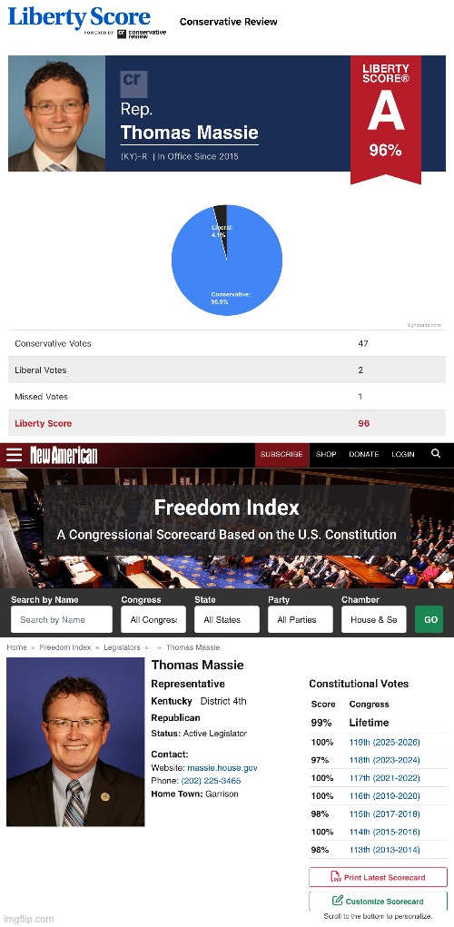 Only morons and cultists will totally ignore Massie's conservative, principled record and commitment to actual America-First policies and positions.