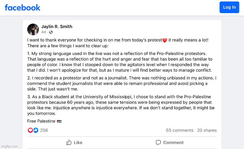 I don’t care. That 2 second clip of a frat boy acting a fool is utterly inconsequential compared to the outright hooliganism we have been witnessing since these campus protests begin last October. And I am in no way embarrassed whatsoever in saying so.
