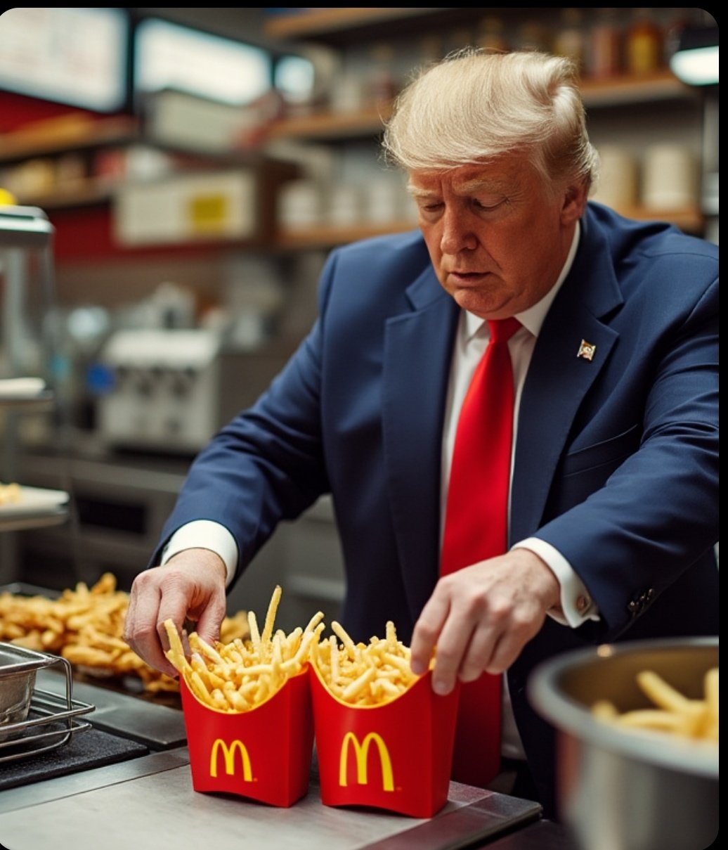 Trump is Killing the French Fyer! He's doing such a good job on his first day of work!