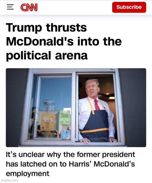 CNN, the arbiters of truth, can’t figure out why Trump wants everyone to know that Kamala lied about working at McDonald’s.