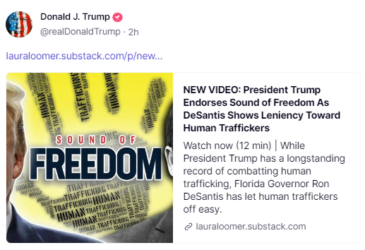 Trump or Laura did not say Ron loves child molesters. All Trump did was link to her substack:
