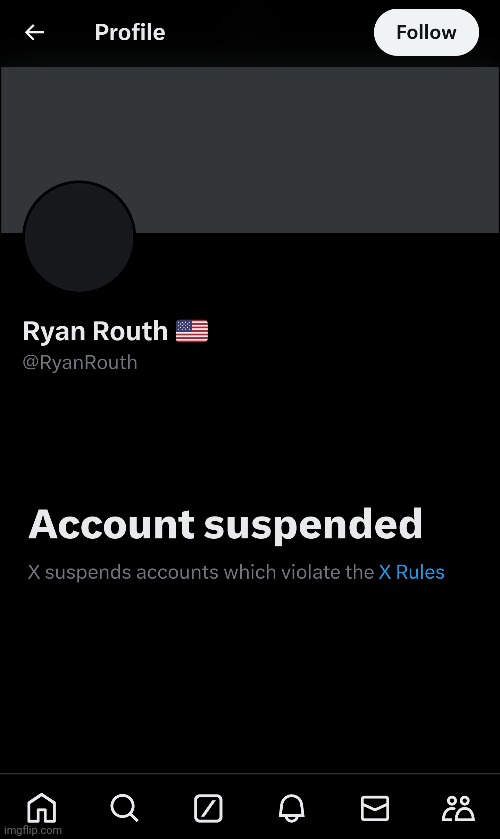 Twitter/X just suspended his account. I was right in the middle of reading his crazy shite and it went blank and said suspended.