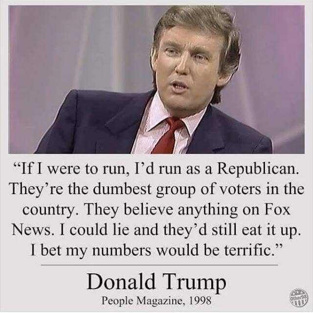 I mean, as fake as it is, it’s even a stupid premise. If all he were concerned with was getting into the White House, with no thought or concern of political principles and just wanting to use whoever or whatever he had to do in order to get there……running as a Democrat, as you propose he is, would have been the much less agonizing path in that case. Nah. He ran as a Republican because he believed (believes) that to be the right thing to do. And did it knowing that it was going to be unpleasant to the most extreme degree. What have you done lately? To be fair in this regard, what have I done lately for that matter??