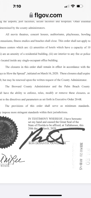 West Palm and Southbeach were closed by executive order signed by Ron on March 20th 2020.