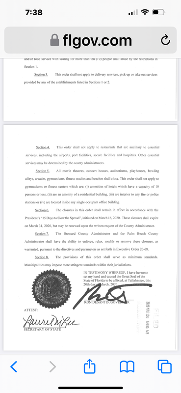 The move comes a day after Gov. Ron DeSantis issued a "safer at home" order for people to only leave their homes for essential services and activities. The order goes into effect at 12:01 a.m. Friday.
