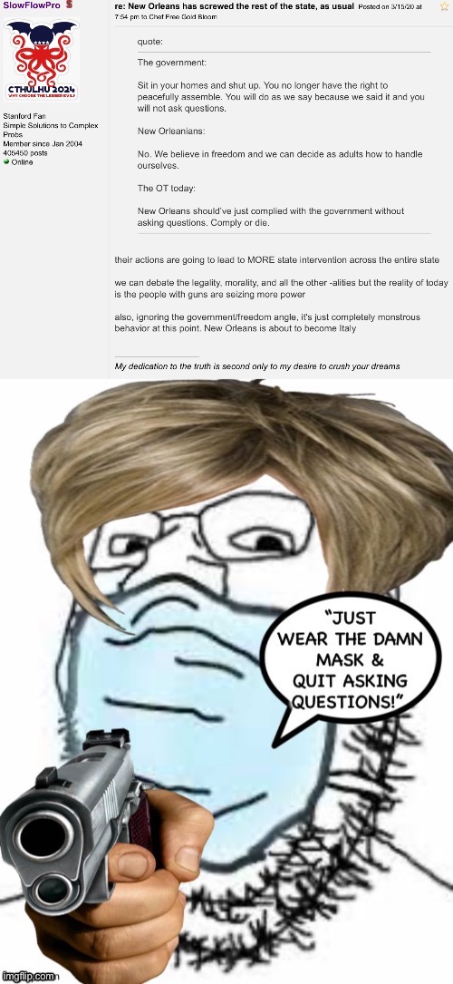 You were simply regurgitating mindless CDC fear porn in that thread and — willfully or not — serving as a dutiful tool for the very results you said you opposed.