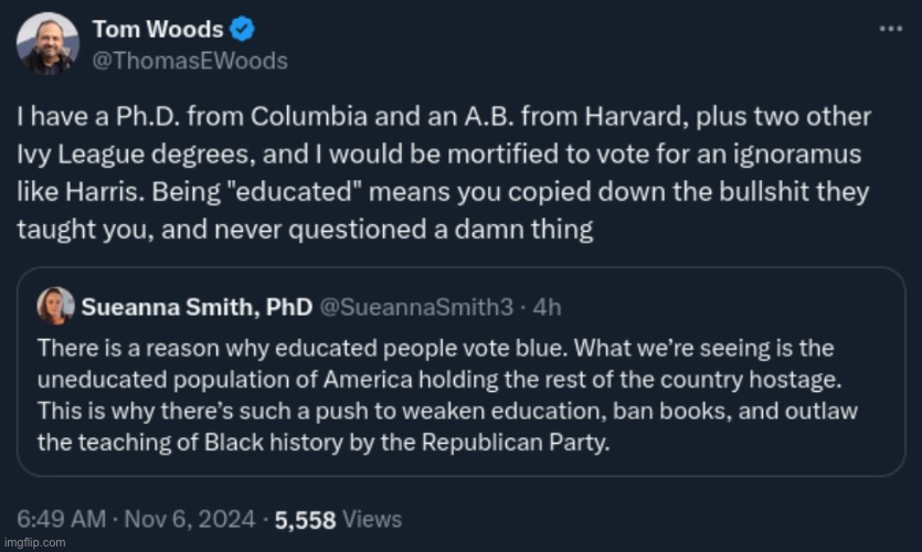 Tweets That Didn’t Age Well:Dems Trust MSM Since They Are Better Educated Than Republicans