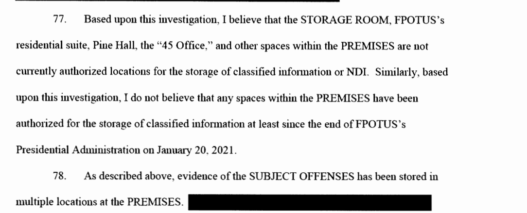 Pretty much, yeah. MAL not an authorized site for storing what in FBI expert's opinion is likely NDI (even though they had reviewed it 2 months prior and were told by Trump to take whatever you need.