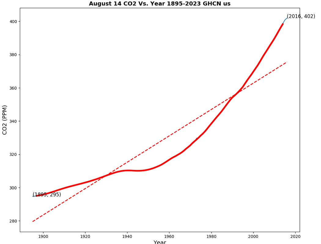 First CO2 concentration over time. There is no dispute that CO2 concentration in the surface level atmosphere has increased over the last 100+ years: