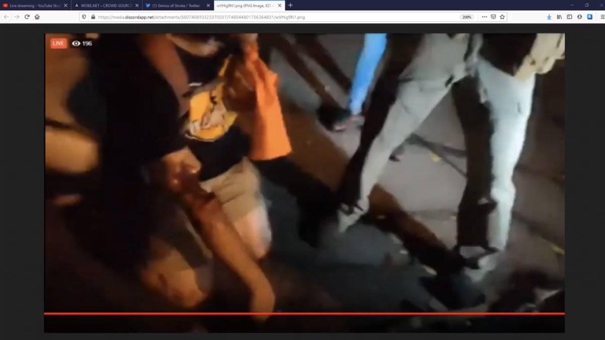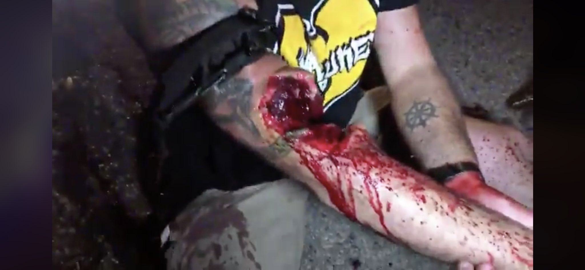 Supposedly militia dude went down street behind gas station and got hit in head with 2x4. He gets chased back, turns and fires. Shoots bald guy.