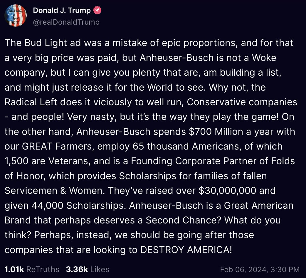 I want to see an AB Super Bowl commercial endorsing Trump for Pres