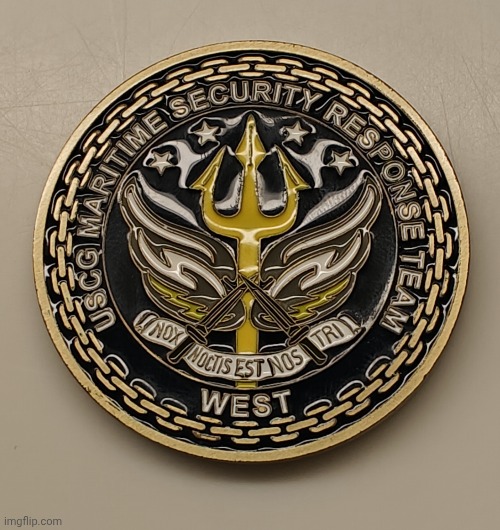 Here's a challenge coin presented to me by the unit commander. The latin motto, "Nox Noctis est Nostri" means "The Night is Ours". I worked with them on night vision systems for airborne, marine surface and underwater.