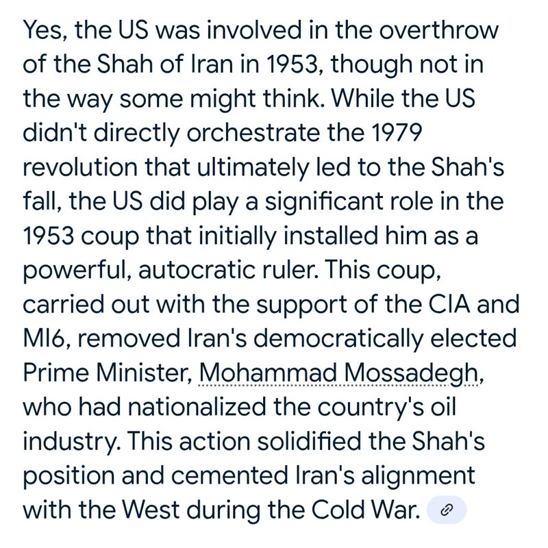 So by installing the shah, we were actually ousting him from power. Interesting tactic