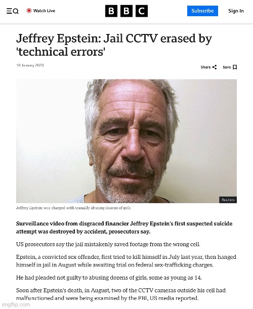 Then we are given a manipulated video missing a full minute of the footage taken during the time frame of Epstein’s alleged suicide and expected to accept the official narrative?