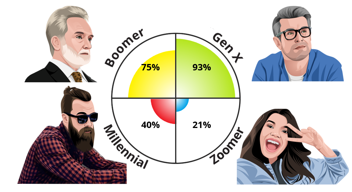 I'm a Gen-X by age. According to this, I am 71% Gen-X, 68% Millenial, 46% boomer, and 25% Zoomer.