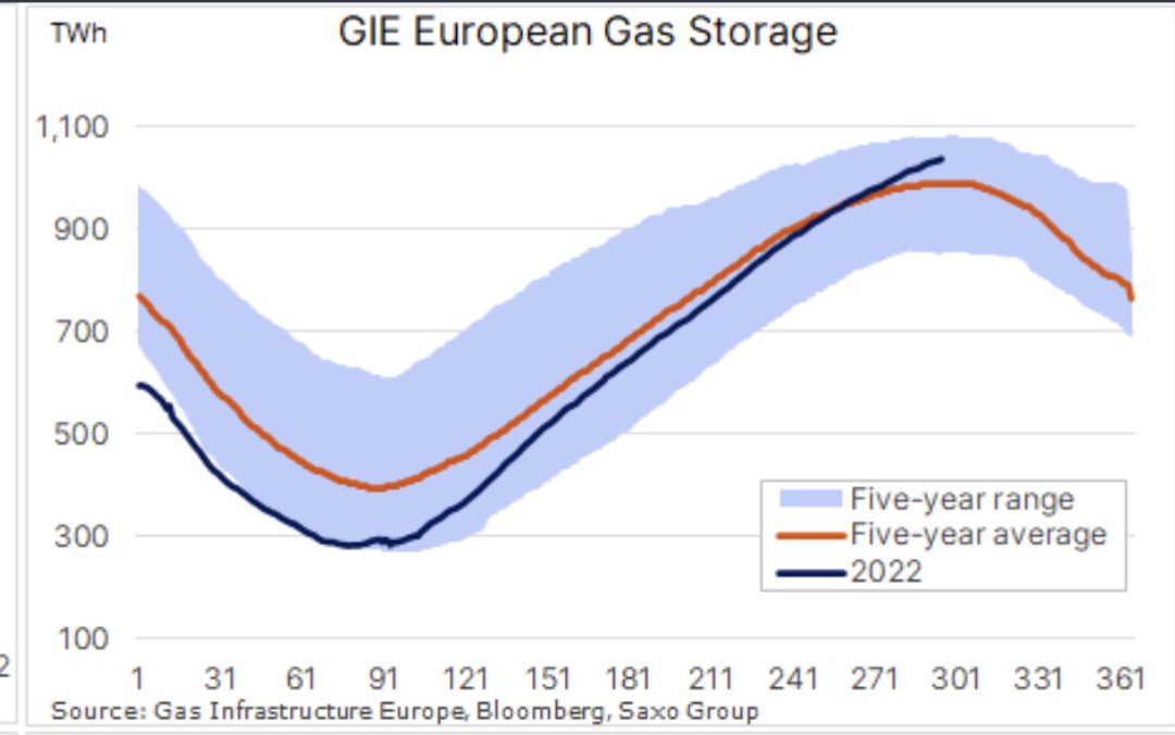 But it is still early fall. In a normal winter scenario, gas demand would exceed supply + storage, and sufficiently re-filling after winter would be challenged.
