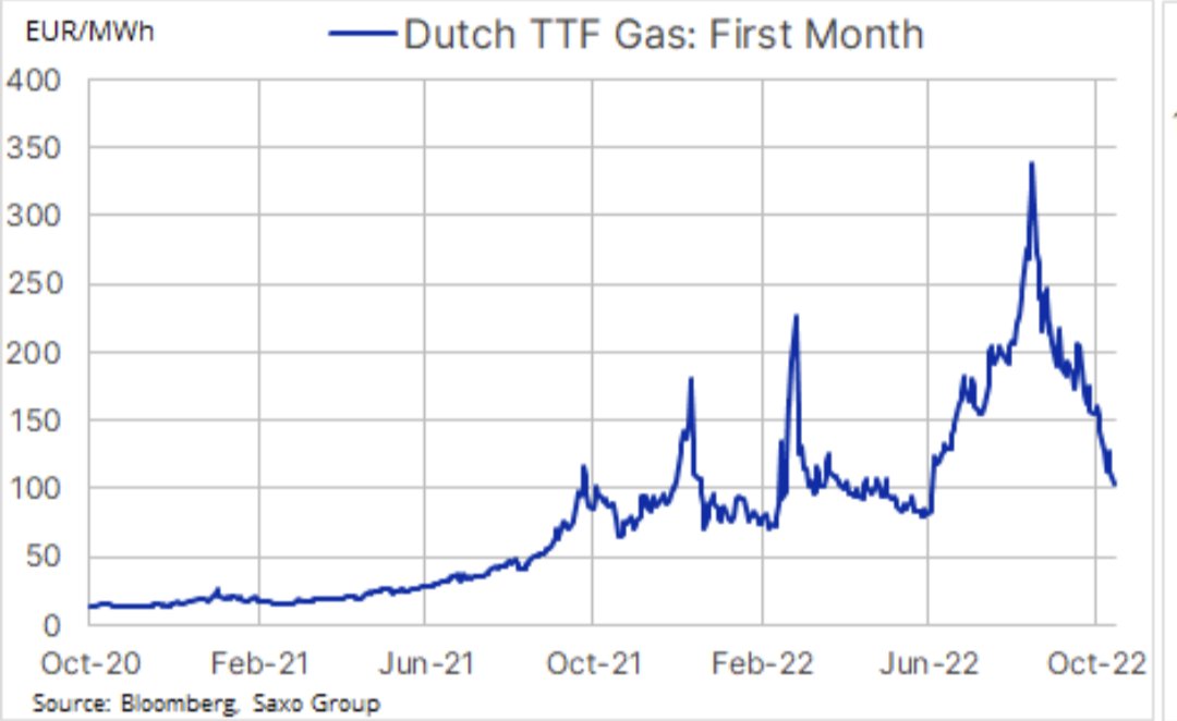 EU natural gas prices continue to collapse down below $100 down from $340 in late August and the lowest since Russia cut supply...storage is nearly full, warmer than expected weather, and there are a bunch of LNG tankers floating around offshore.